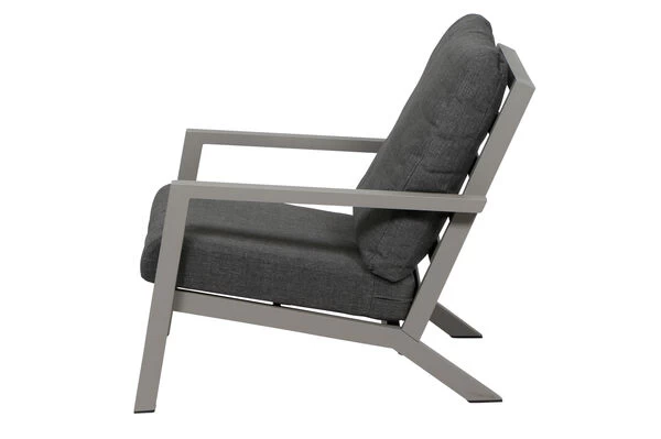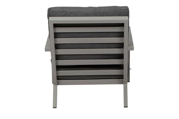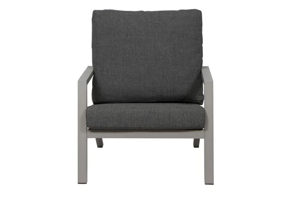 Den Alltag einfach hinter sich lassen! Dieser wetterfeste und pflegeleichte Loungesessel bietet höchsten Sitzkomfort gepaart mit modernem Design. Gönnen Sie sich ein wenig Luxus in Ihrem Alltag und verbringen Sie in gepflegter Atmosphäre den Tag auf Ihrer Terrasse: bei einem leckeren Frühstück, bei einer gemütlichen Mittagspause oder lassen Sie einfach den Tag entspannt ausklingen. Der bequeme Sessel macht es möglich und lädt Sie und Ihre Gäste jederzeit unaufdringlich zum Verweilen ein. Die praktischen ca. 50,6 cm hohen Armlehnen aus Aluminium bieten zusätzlichen Komfort. Der Sessel hat ein Gesamtmaß von ca. 79 x 91 x 81 cm, die Sitzfläche ist ca. 65 cm breit, ca. 60,5 cm tief und die Sitzhöhe liegt bei ca. 30 cm, die perfekte Loungehöhe.