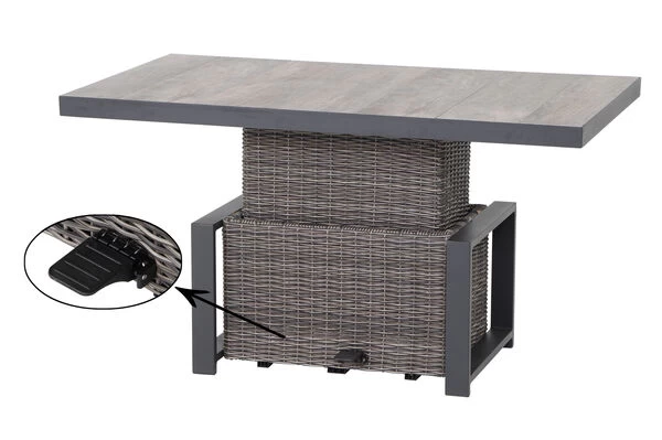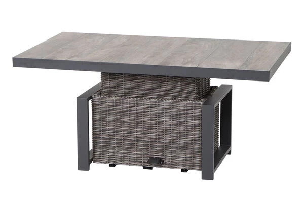 SIENA GARDEN Corido Lifttisch 130x75cm aus Gardino®-Geflecht/Keramik in charcoal für 4 Personen
