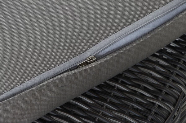 | Pflegeleicht und wetterfest Dank der hochwertigen Materialien können Sie das Möbelstück ohne Probleme das ganze Jahr über nutzen. Die Kissen verfügen über einen praktischen Reißverschluss und sind zudem handwaschbar. Mit einer regelmäßigen, jedoch nicht sonderlich zeitintensiven Pflege, haben Sie ganz besonders lange Freude daran. |