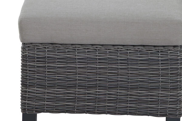 | Stabiles Polyrattan-Geflecht Das halbrunde Polyrattan-Geflecht GARDINO® in der Farbe charcoal grey zeichnet sich besonders durch seine Lichtechtheit und Stabilität aus. Es ist zudem besonders wasserabweisend und wetterfest. Das robuste Material schützt das Möbelstück somit bestens vor Witterungseinflüssen. |