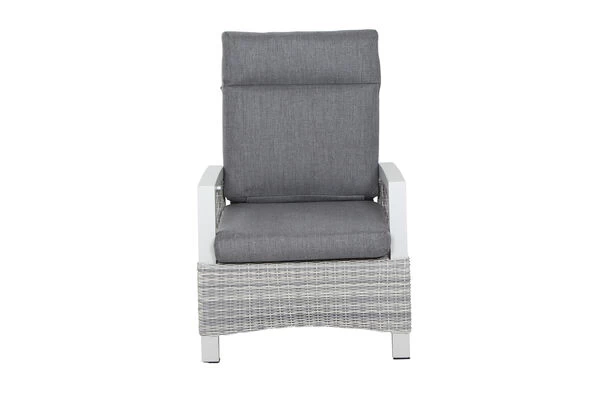 Einfach zurücklehnen und entspannen. Mit dem hochwertigen Sessel lassen Sie den Alltag hinter sich: Egal ob Sie die Sonne genießen, ein gutes Buch lesen oder einfach nur gemütlich mit Ihren Lieben gesellig beisammensitzen möchten. Dieser bequeme Sessel ist der ideale Begleiter und ein wahrer Anpassungskünstler, der Sie und Ihre Gäste jederzeit zum Verweilen einlädt. Die Rückenlehne lässt sich ganz einfach über einen Knopf in der Armlehne stufenlos einstellen. Die verbesserte Movetechnik sorgt für eine sanft laufende Rückenlehne. Der Sessel hat ein Gesamtmaß von ca. 73 x 87 x 103 cm. Die ca. 60 cm breite Sitzfläche bietet genügend Platz. Mit einer großzügigen Sitztiefe von ca. 59 cm und bei einer Sitzhöhe von ca. 36 cm ohne Kissen lässt es sich hier auch herrlich bei einem Nickerchen entspannen. Die praktischen Armlehnen aus Aluminium bieten zusätzlichen Komfort und sind echte Hingucker. Passende, extra starke Kissen in der Trendfarbe stone grey verleihen dem Sitzmöbel ein unvergleichliches Sitzerlebnis.