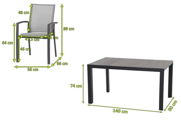 SIENA GARDEN Silva/Velia Dining Set, anthrazit/grau, Alu/Ranotex®-Gewebe/Keramik, ca. 140 x 90cm, inkl. 4 Diningsessel