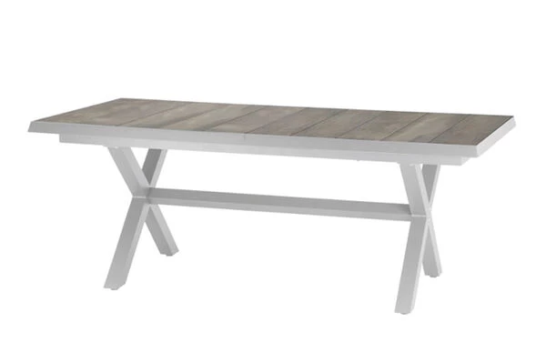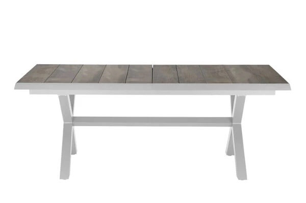 1x SIENA GARDEN Sincro Ausziehtisch, matt weiß-grau/washed grey, Alu/Keramik, 200/260×100 cm, synchroner Auszugsmechanismus (H48017)