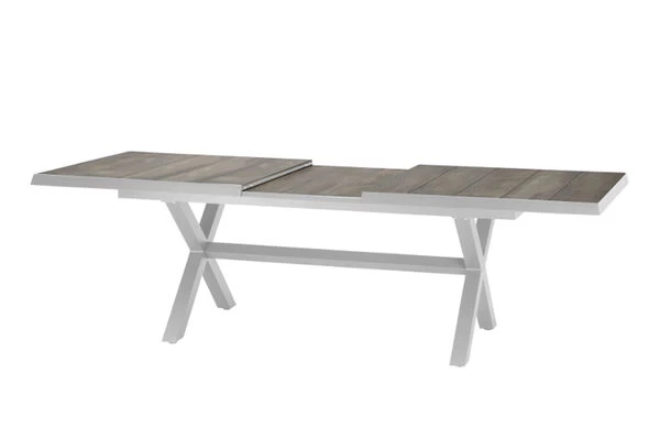 SIENA GARDEN Sincro Ausziehtisch, matt weiß-grau/washed grey, Alu/Keramik, 200/260×100 cm, synchroner Auszugsmechanismus