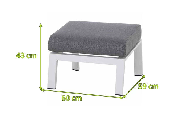 SIENA GARDEN Valencia Loungehocker, matt weiß-grau/stone grey, Alu/Ranotex®-Gewebe, 59x60x43 cm