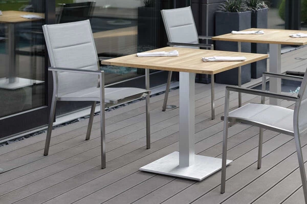 | Hochwertige Materialien Edelstahl, Aluminium und Textilene werden sorgfältig ausgesucht und verarbeitet. Aufgrund ihrer Wetterfestigkeit und Eleganz sind sie ein idealer Baustoff für Gartenmöbel. |
