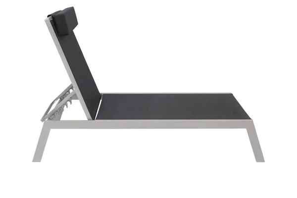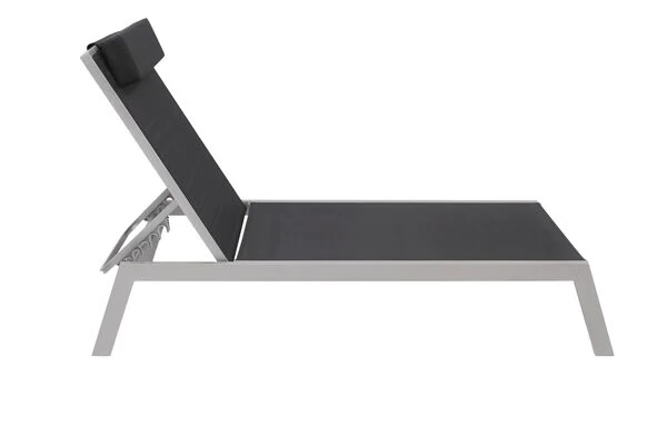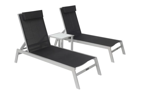 Exklusives Gartenliegenset von Villana in Silber / Schwarz mit praktischem Beistelltisch